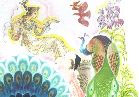 Elle porte le nom de Junon dans la mythologie romaine. Dans la fable 7 du Livre I Jupiter na-t-il pas demandé à tous les animaux de lui faire part de leur souhaits. Mais pourquoi donc justement ces deux personnages.